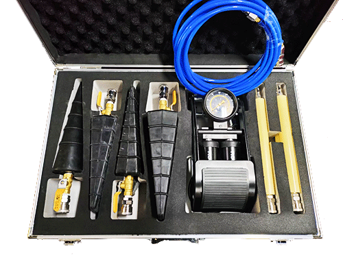 用于快速封堵背壓≦0.1Mpa,泄漏介質溫度≦60℃的存儲罐、油罐車、液柜車裂縫,不需要拉伸帶。操作人員堵漏時將槍頭、槍桿、連接氣管、腳踏氣泵連接在一起,手持槍桿在安全距離外,將楔形或圓錐形密封袋插入于直徑15至60毫米的裂縫里面,以及直徑30至90毫米的漏孔內,并迅速充氣密封裂縫。