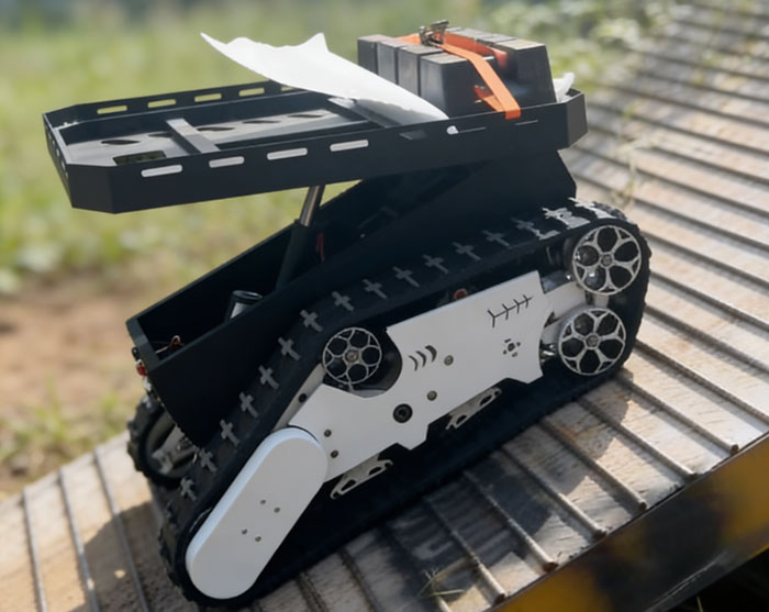 底盤采用橡膠橫紋履帶與先進避震系統,搭配輕量化一體壓鑄鋁輪及耐用材質,可實現常規爬坡、極限爬坡,適配多地形穿行,保障復雜環境穩定運行。