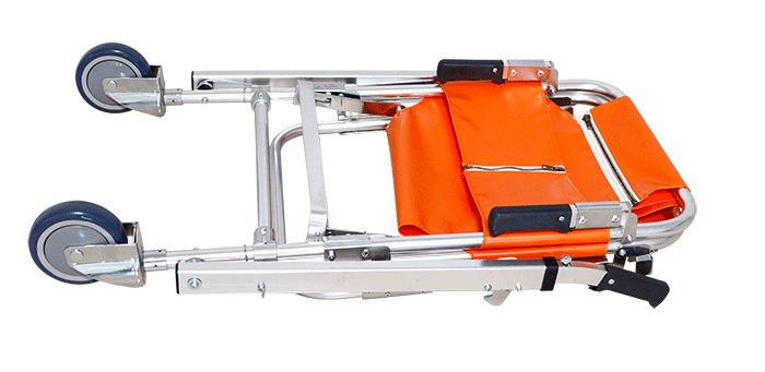 可折疊式結(jié)構(gòu)便于攜帶,用于救護骨折患者上下樓道之用。產(chǎn)品配備寬型保險帶,以保證病人在轉(zhuǎn)移過程中的安全擔架設(shè)有兩個輪子,方便于在地面的移動。擔架靠背后端設(shè)有加強把手,可承受更多重量。