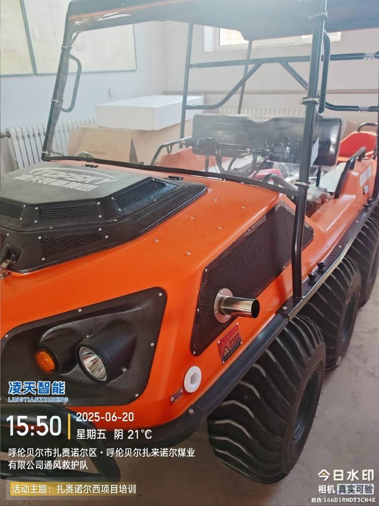 以完成可靠的野外應急救援為目的,該水陸兩棲全地形車可提供一種安全的運輸方式和可靠的運載平臺,產品可以在山地環境、濕地環境、沼澤環境、水面環境、叢林環境等多種工作環境下,實現全天候連續作業。并且可以在災害現場巡邏勘察、運送受傷人員、并有效實施援救。