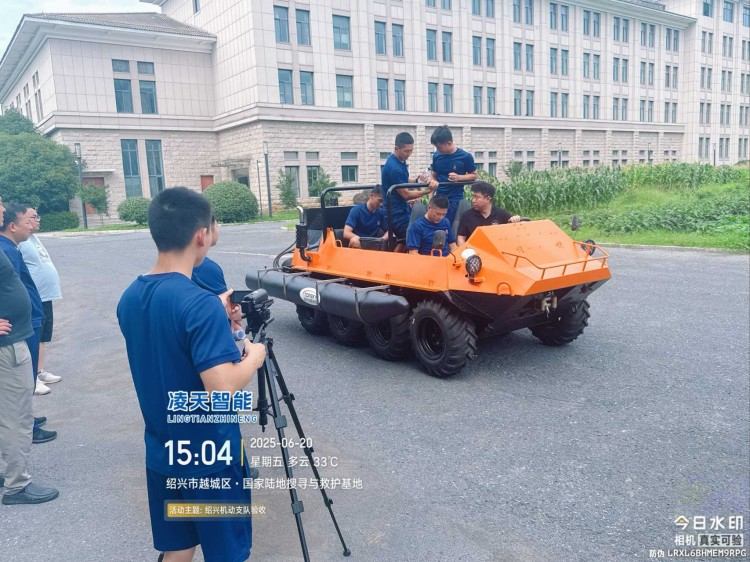 針對水災頻發的地區,水域救援任務必不可少。但往往洪澇災害、城市內澇往往伴隨著惡劣的天氣和崎嶇的地形,沖鋒舟需要多次搭載不同交通工具并數次轉移,水陸兩棲全地形車可以輕松通過水淹、泥濘、沼澤等環境,無需人力搬運,實現陸地駕駛和水中行走自由切換,以最快的時效抵達現場實施救援。