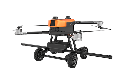 本無人機為北京凌天智能裝備集團研發的陸空兩棲航磁探測無人機,采用四旋翼機身設計,載重大,續航長,并且機體折疊標準化負載接口。同時,該無人機具備陸空兩棲功能,可以在地面行駛,行走系統可快拆。